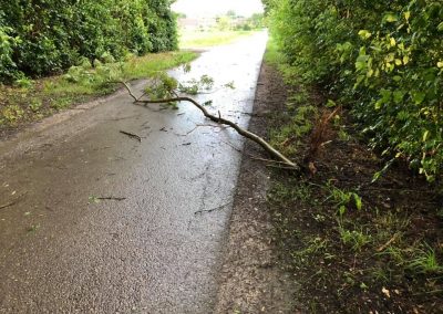 Es wurden mehrere Bäume sowie größere Äste aber auch Gegenstände wie Mülltonnen und Straßenschilder durch uns von den Straßen entfernt. ???