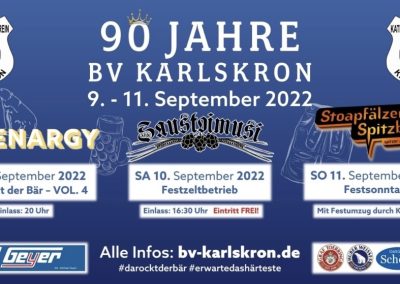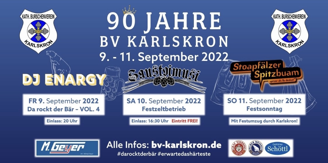 90 Jahre BV Karlskron, wir nehmen am Feststonntag teil. Treffpunkt in Uniform ist um 07.45 Uhr am Feuerwehrgerätehaus Pobenhausen.