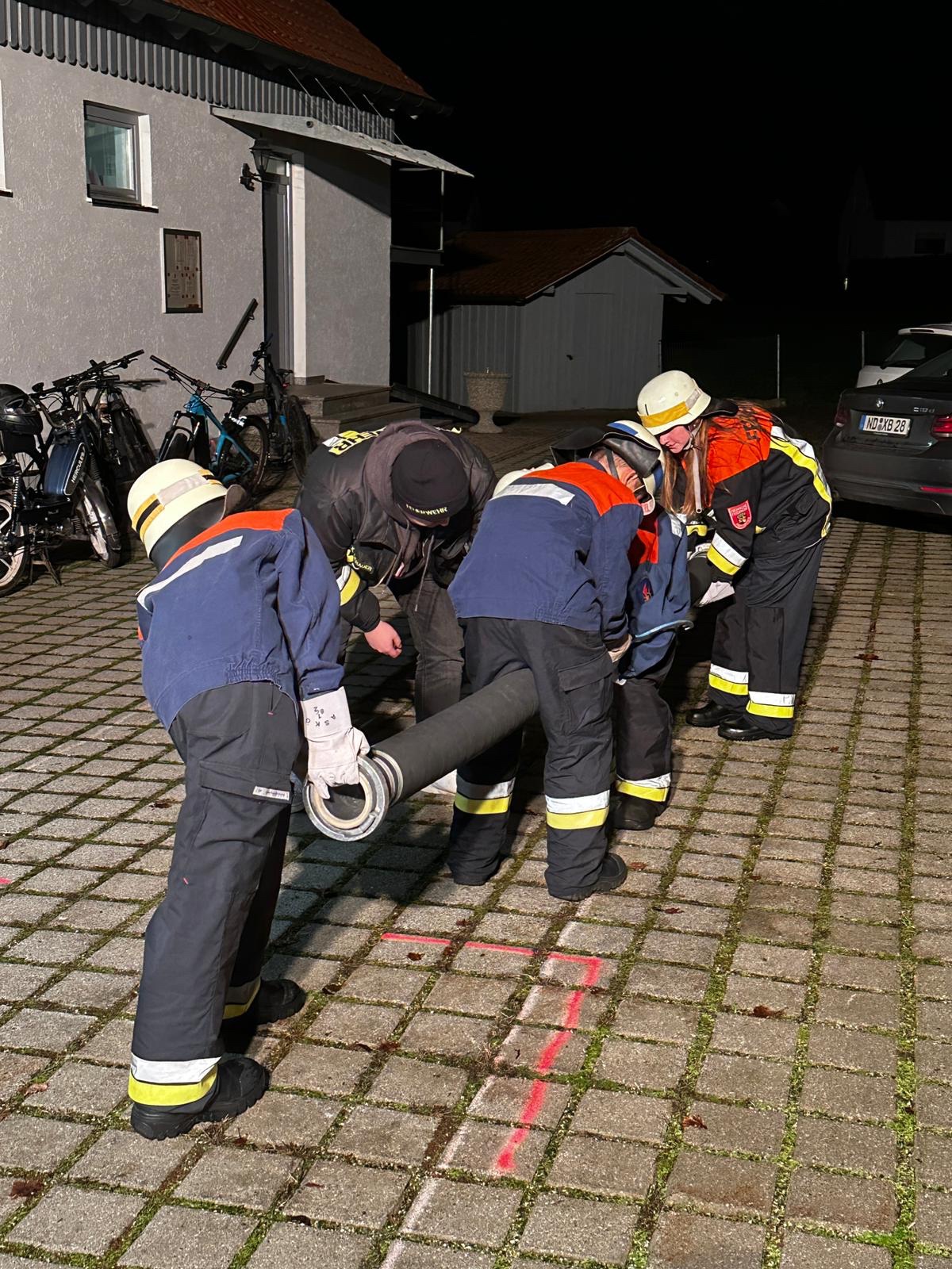 Am 08.11.2022 gings mit der vorletzten Jugendübung im November los. Die Jugendlichen Bauten den Lichtmast und da Stativ auf und Kuppelten im Hof die Saugschläuche.