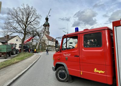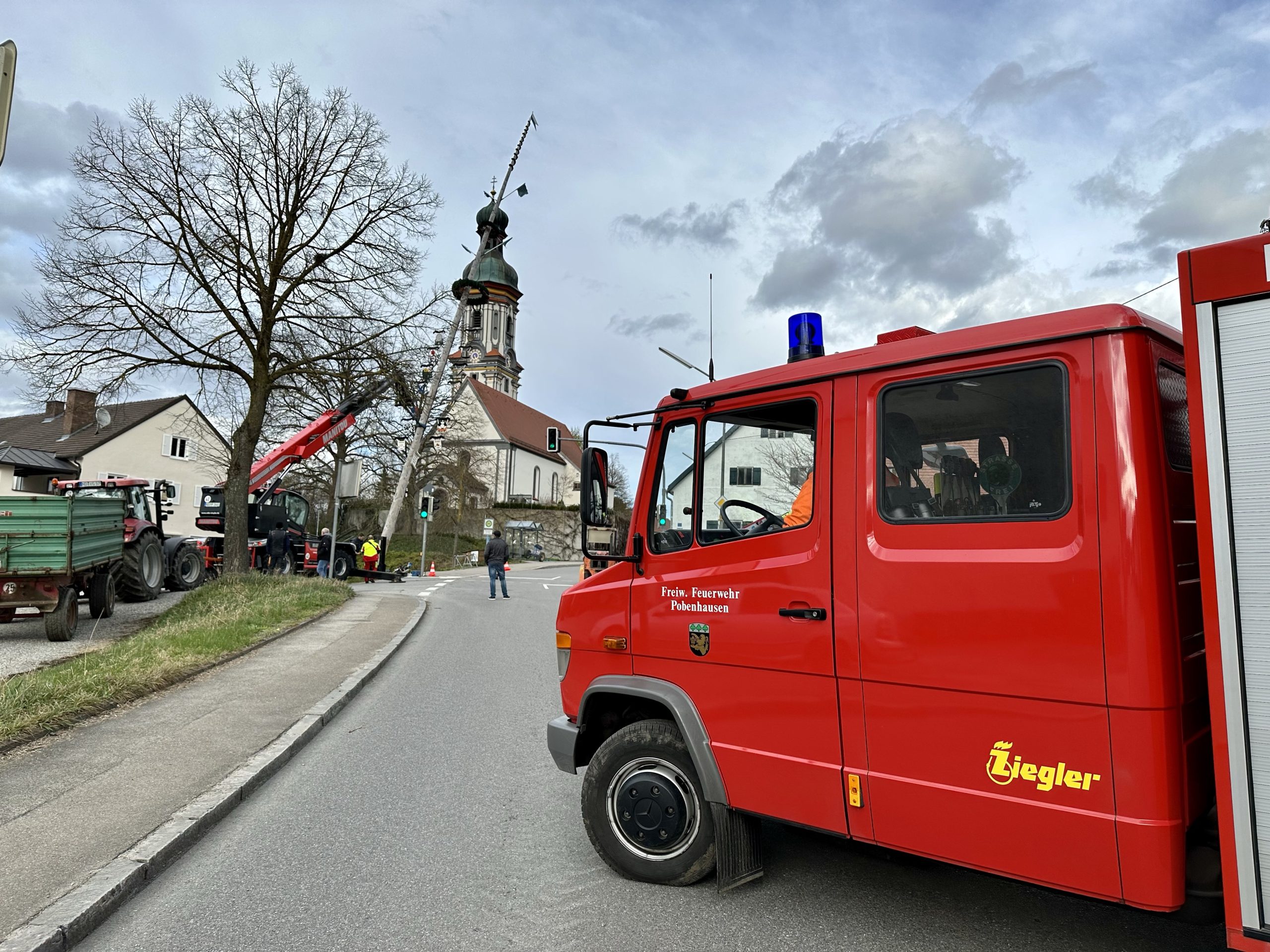 Zum letzten Tag im Monat März wurde der alte Maibaum umgelegt. Durch eine Firma mit schwerem Gerät wurde der Baum sicher und ohne Schade zu Boden gebracht.