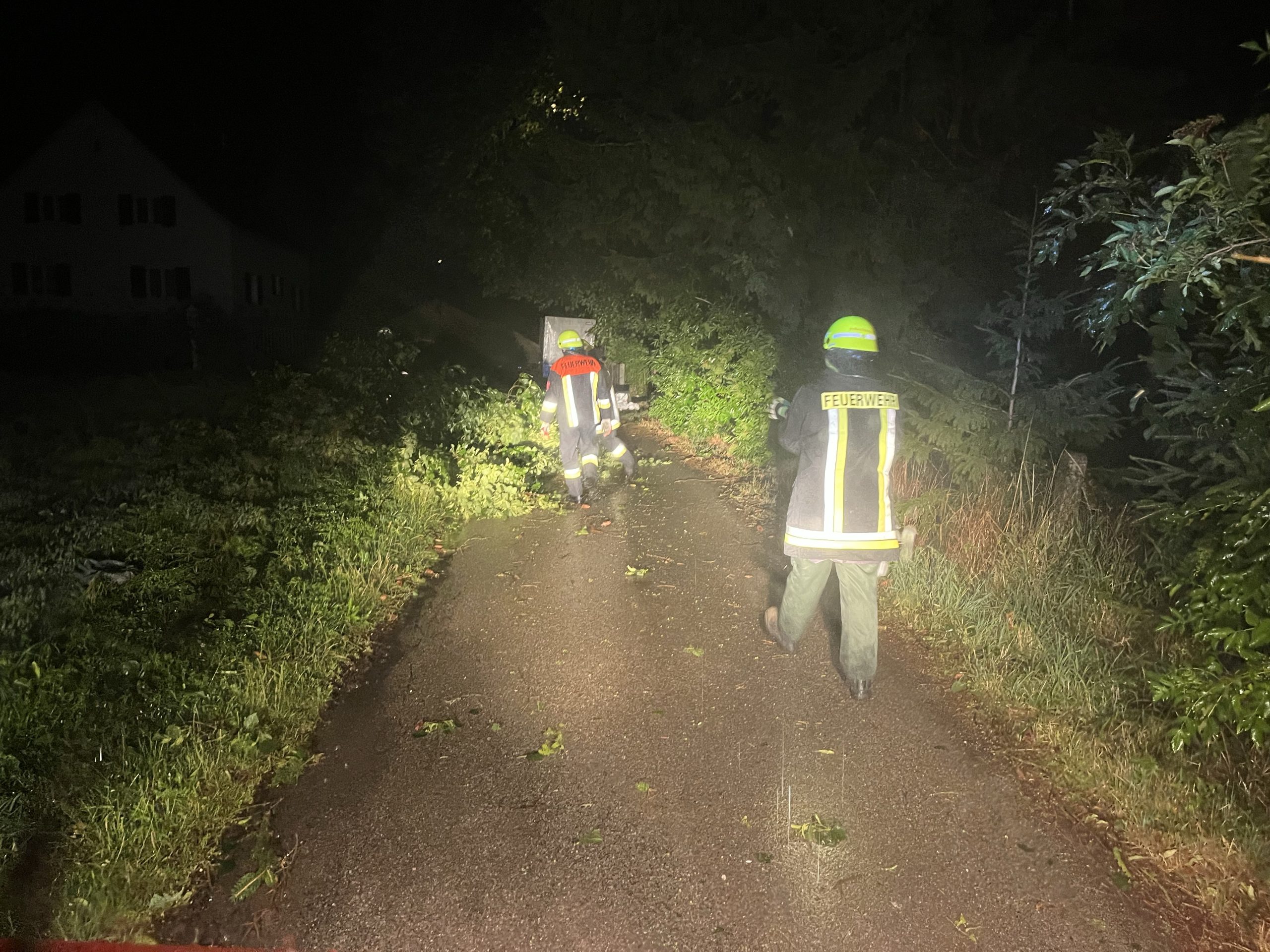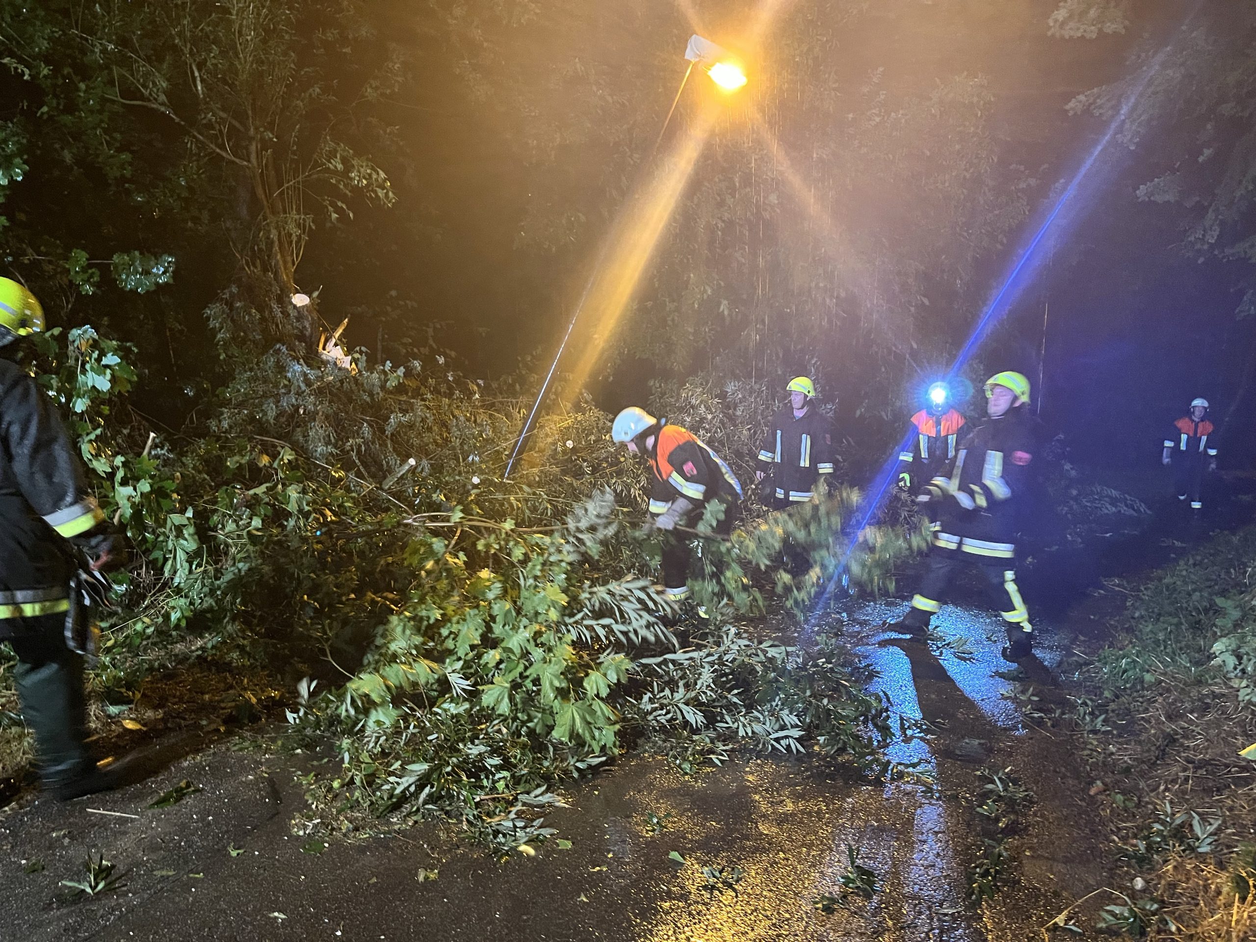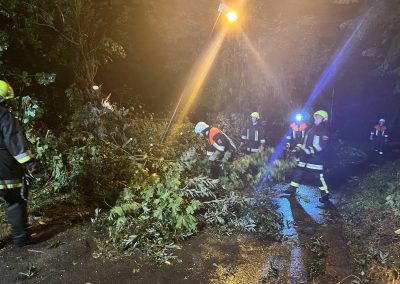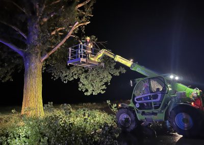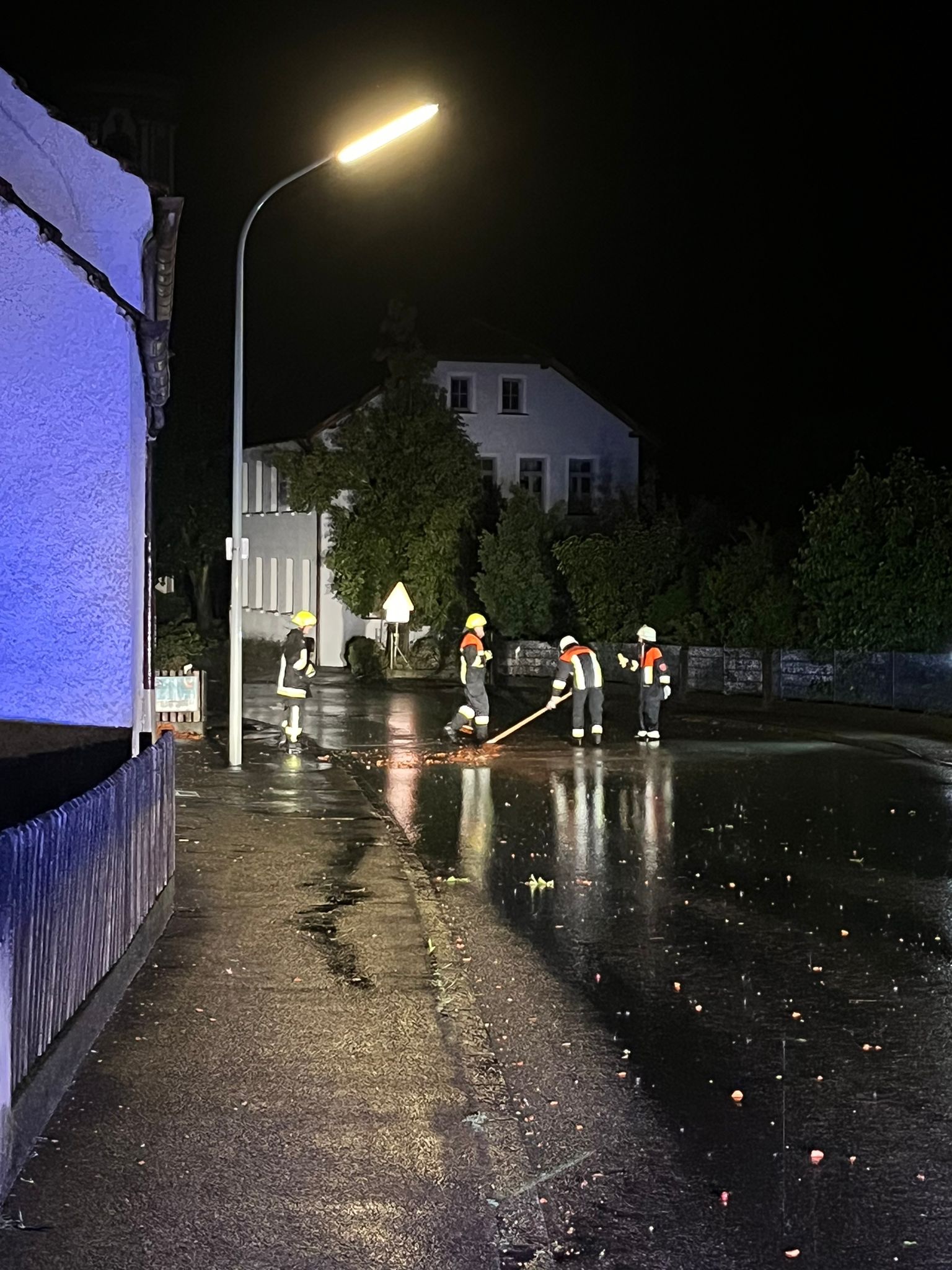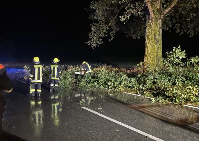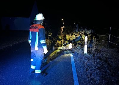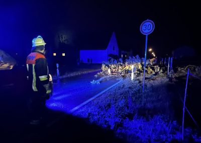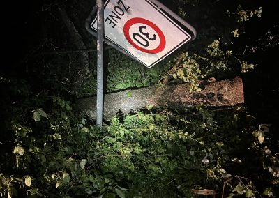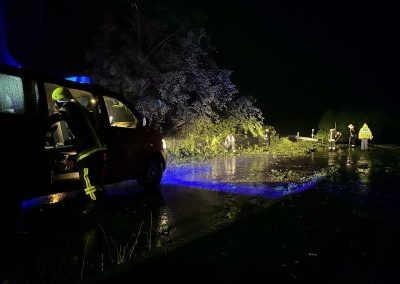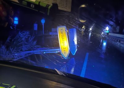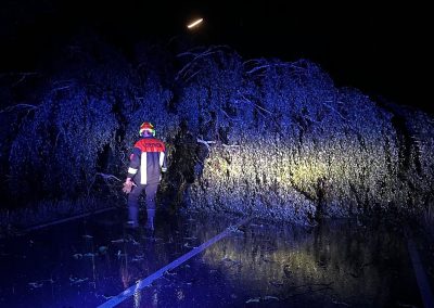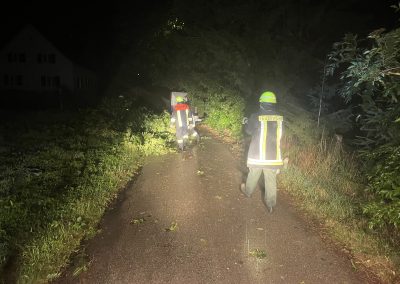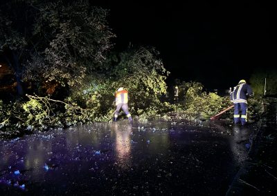 Am 12.07.2023 kam es gegen 00:01 Uhr zu einem Stromausfall in der Gemeinde Karlskron, nach kurzer Zeit wurde durch die Aktiven das Feuerwehrgerätehaus besetzt und wir meldeten uns bei der Leitstelle an. Ebenso kurz nach bekanntwerden des Stromausfalls ging es mit einem richtig heftigem Unwetter los. Nach 20 Minuten war der Strom wieder da. Um 00:28 Uhr wurden wir mit Sirene, Funkmeldeempfänger und Handyalarm zu unserem ersten Einsatz gerufen. Da zuvor durch unseren MTW das Ortsgebiet Erkundet wurde, wussten wir es wird ein längerer Einsatz mit mehreren Einsatzstellen die Abzuarbeiten sind. Wir teilten uns in den Fahrzeugen und in Fußtrupps auf um die ganzen Einsatzstellen abzuarbeiten. Wir waren bis ca. 03:00 Uhr unterwegs und erledigten alle Einsatzstellen. Im Nachgang stand die Grobreinigung der Geräte, Fahrzeuge und Kleidung statt, sodass wir gegen 05:00 Uhr das Feuerwehrgerätehaus verlassen konnten. Um 08:00 Uhr wurden nochmals kleinere Einsätze abgearbeitet und anschließend die Fahrzeuge mit den Geräten wieder zu 100% Einsatzbereit gestellt. Um 10:00 Uhr war für uns Einsatzende.