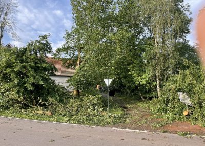 Unsere Hauptaufgaben der Einsätze waren, die Straßen von Bäumen und Ästen zu befreien, Lose Gegenstände wie Dachziegel, Telefonleitungen und Verkehrsschilder zu Sichern und die Straßen von Teilen wie Mülltonnen, Trampolins und groben Schmutz und Dreck zu befreien, sodass die Straßen wieder Befahrbar waren.