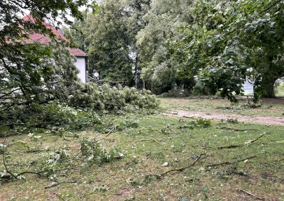 Erst am Tag bei Helligkeit waren die Schäden am besten zu Erkennen, Teilweise bot sich ein Bild der Verwüstung, den ganzen Tag waren Motorsägen und Maschinen zu hören um die Schäden wieder zu beseitigen.