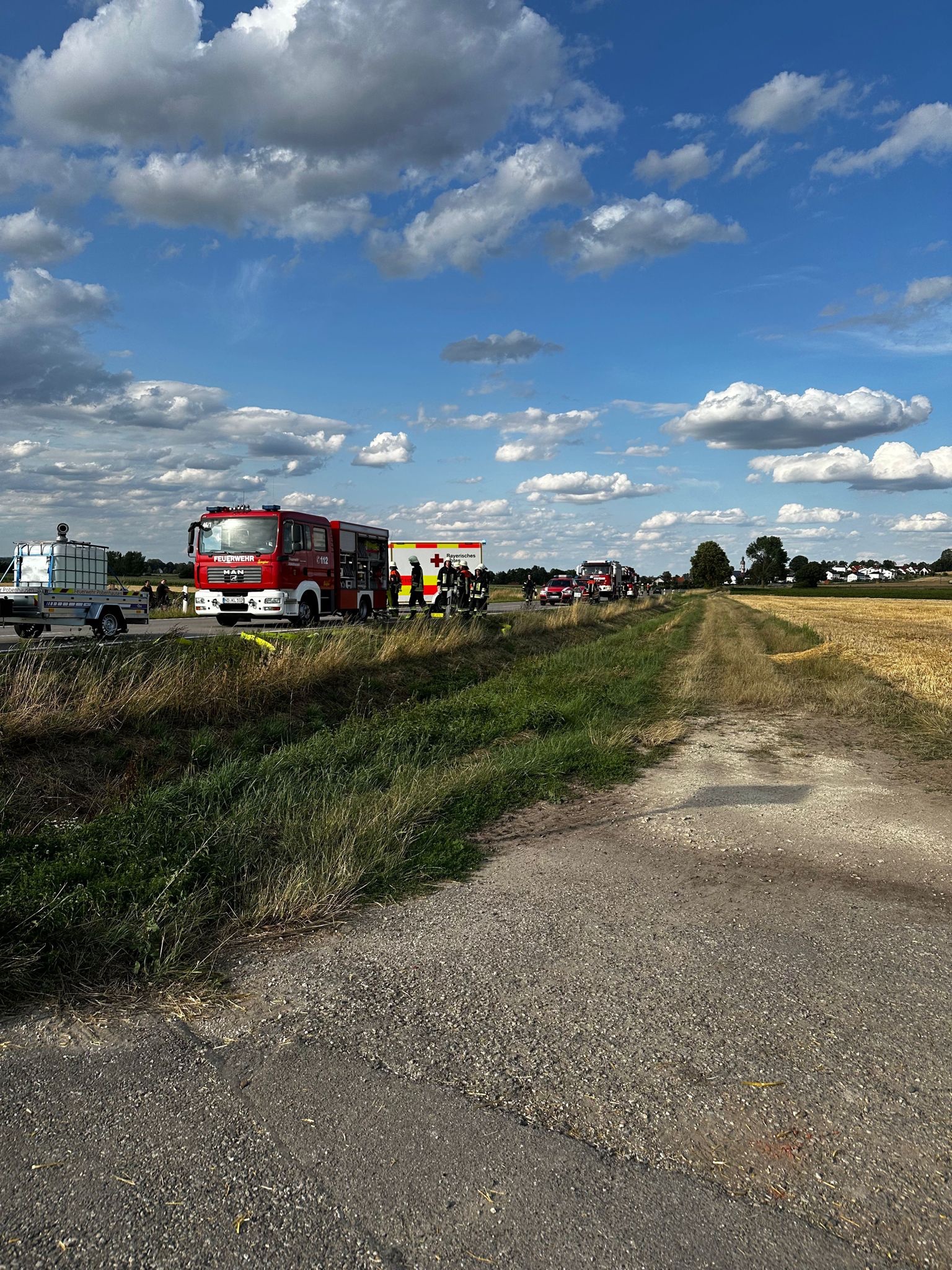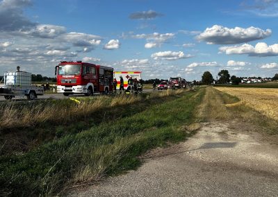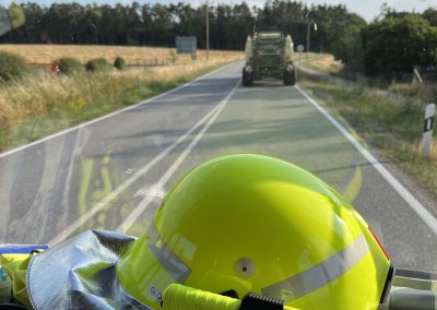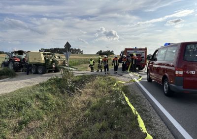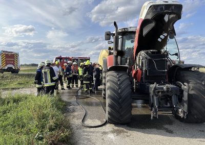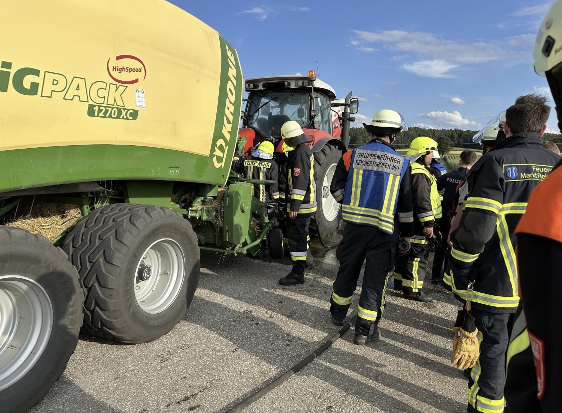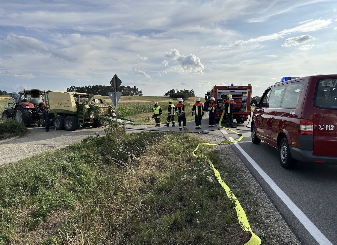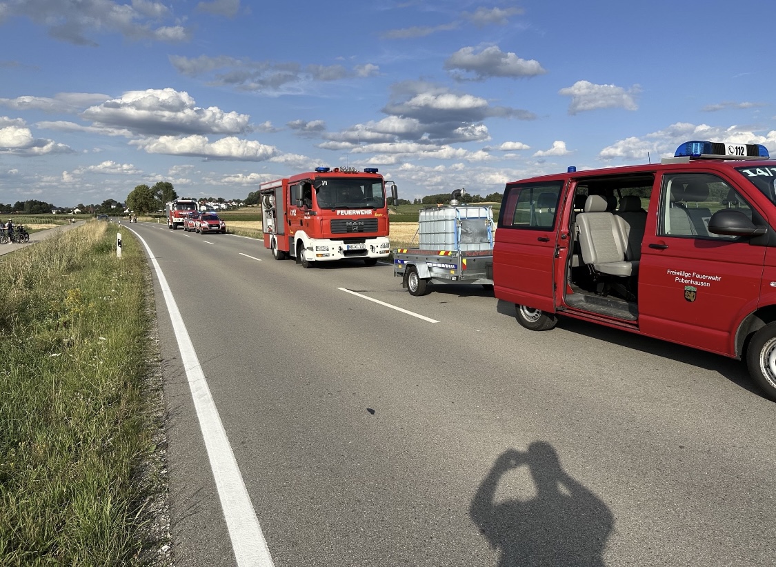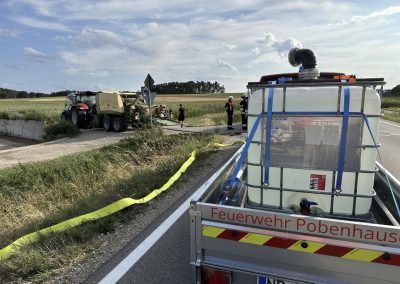 Wir wurden zu einem Traktor Brand Ortsausgang Pobenhausen Richtung Hönighausen alarmiert. Bei unserem Eintreffen war kein Feuer mehr zu entdecken, es rauchte noch leicht aus dem hinterem Teil des Traktors. Wir kühlten den Traktor mit unserem Schnellangriff. Außerdem wurde der Traktor mit einer Wärmebildkamera kontrolliert. Nach Abschluss der Maßnahmen begleiteten wir das noch Fahrbereite Traktorgespann (Traktor und Ballenpresse) nach Stengelheim (Gemeinde Königsmoos). Dort kontrollierten wir den Traktor nochmals, allerdings ohne einer Feststellung. Nach 1,5 Stunden war Einsatzende.