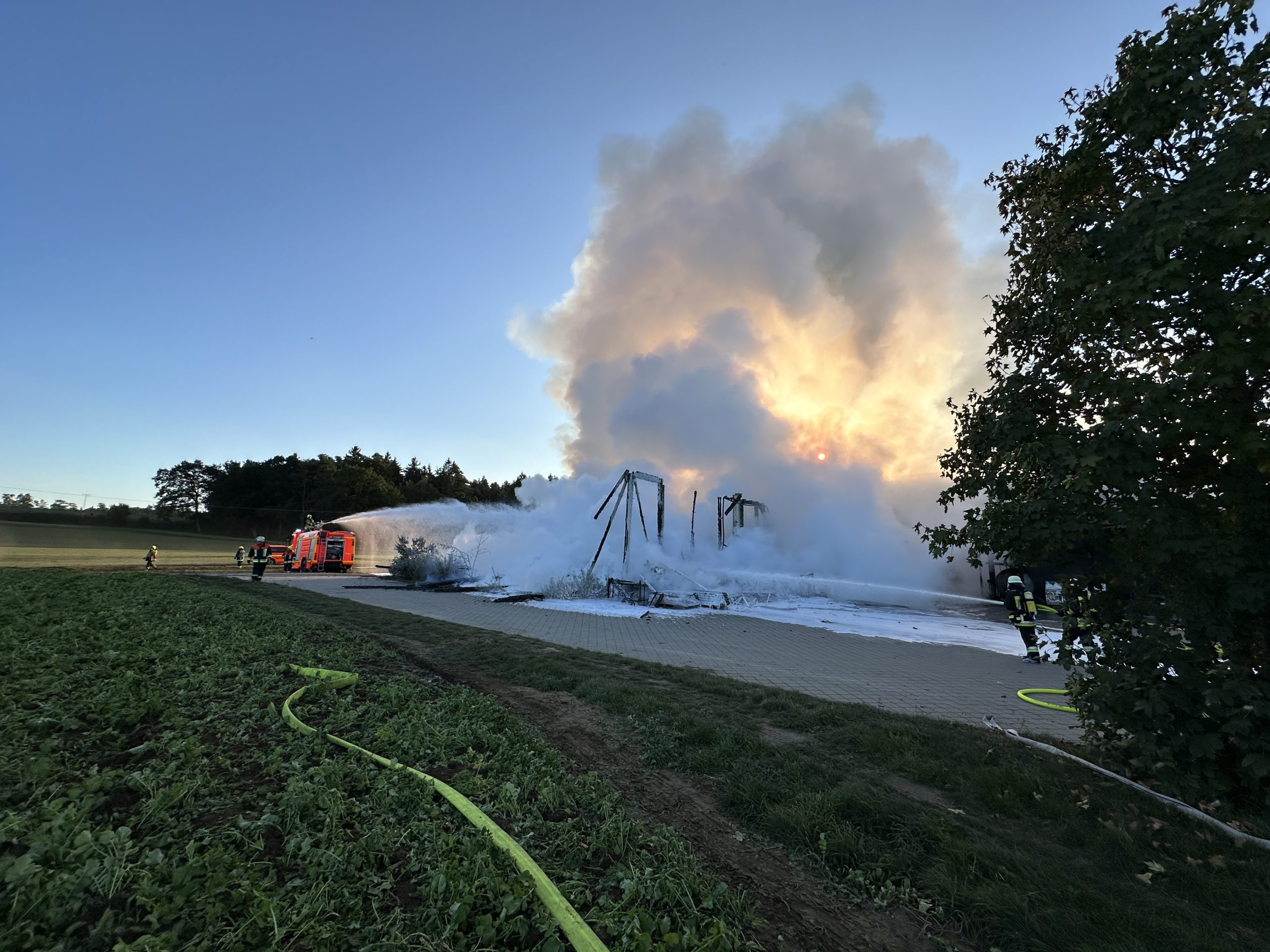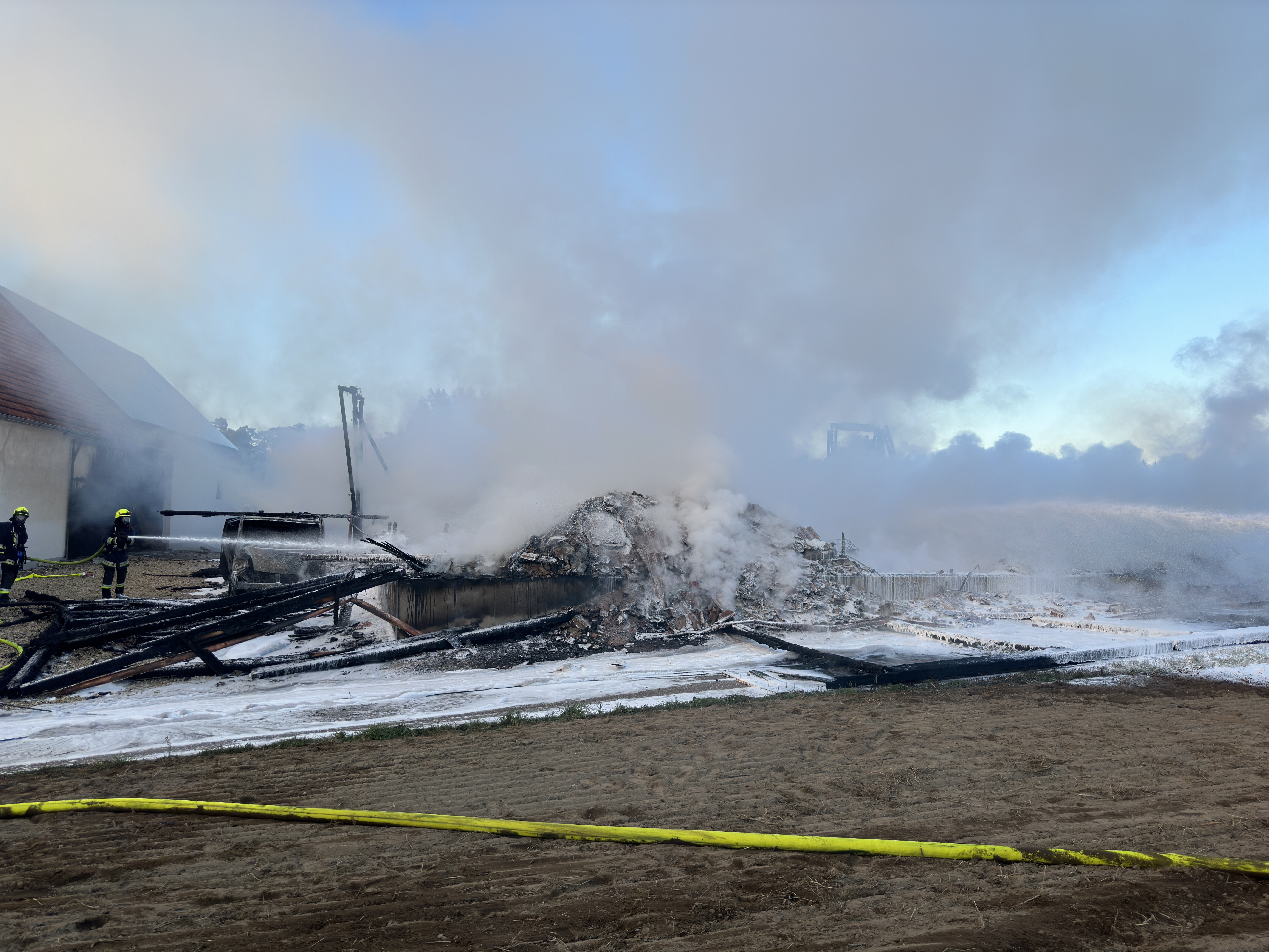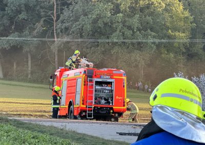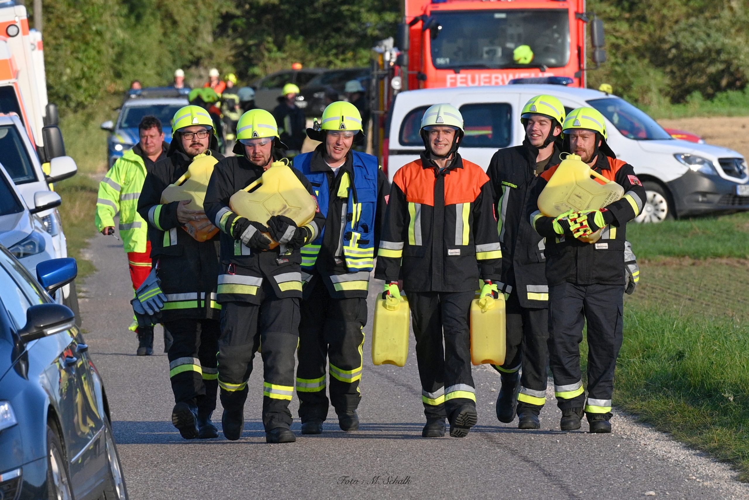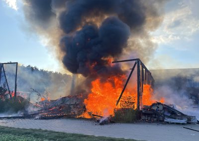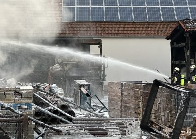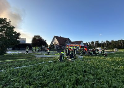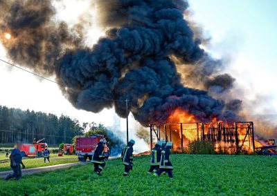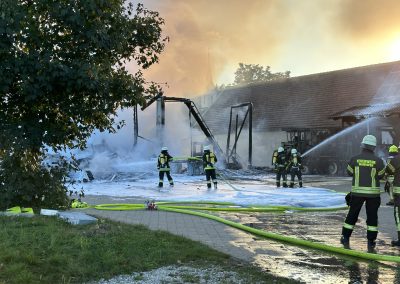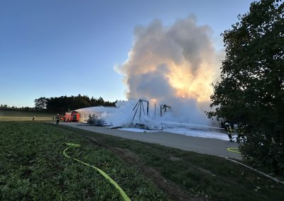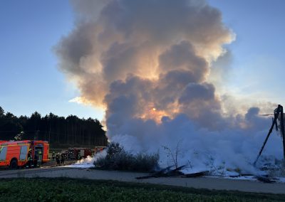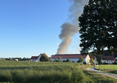 Nach kurzem warten wurden wir in den Einsatz mit eingebunden. Wir untersützen mit unserer Tragkraftspritze von unserem TSF-W bei der langen Schlauchstrecke von einem Weiher als Verstärkerpumpe. Auch unser MTW stand mit unserem Schaum-Wasserwerfer-Anhänger am Bereitstellungsplatz. Von unserem Anhänger kam unser Schaummittel zum Einsatz. Desweiteren standen wir mit 6 Atemschutzgeräteträgern am Brandobjekt auf Bereitschaft. Übriges Personal vom MTW untersützte die Kräfte vor Ort bei verschiedenen Arbeiten an der Einsatzstelle.