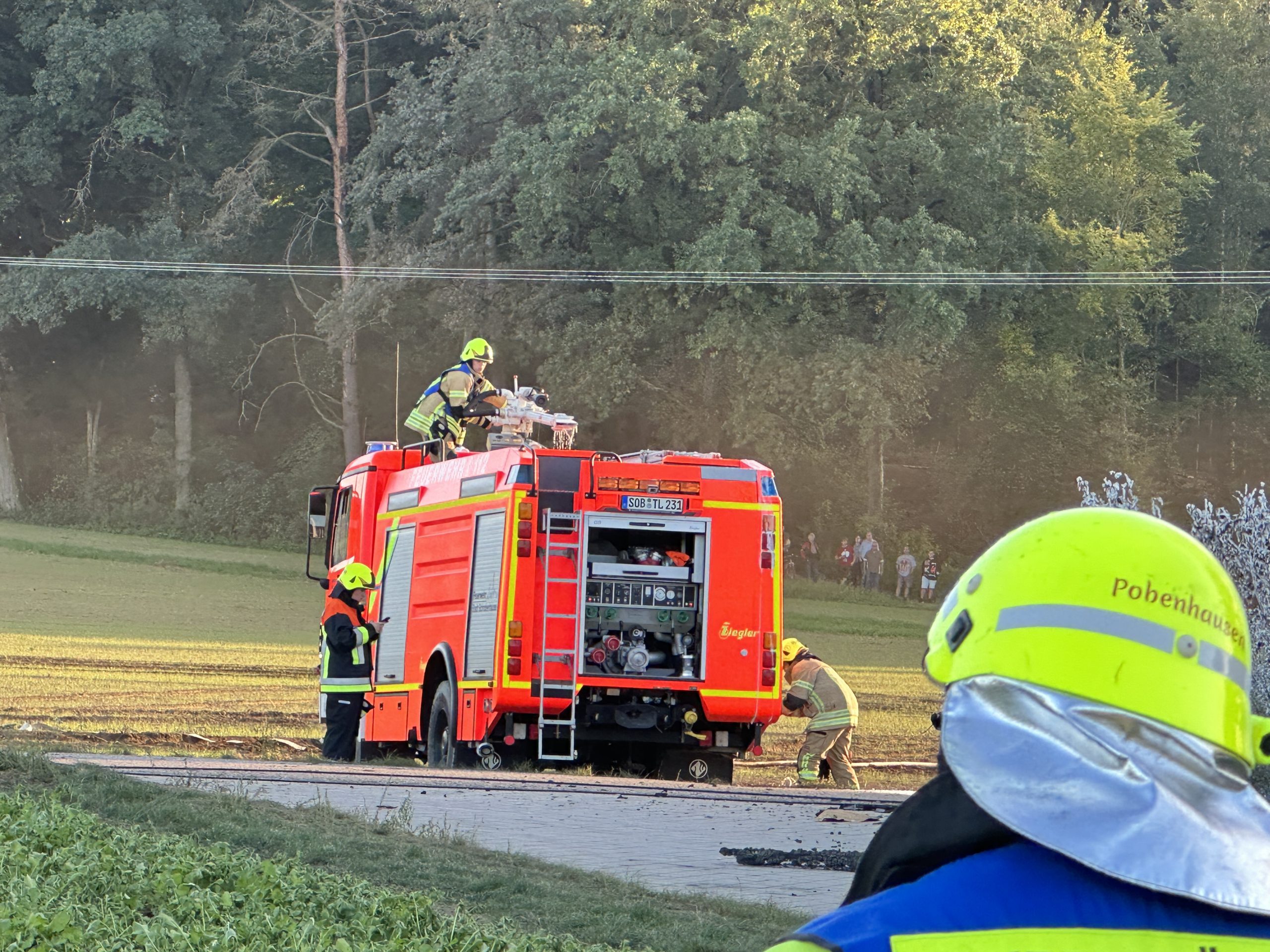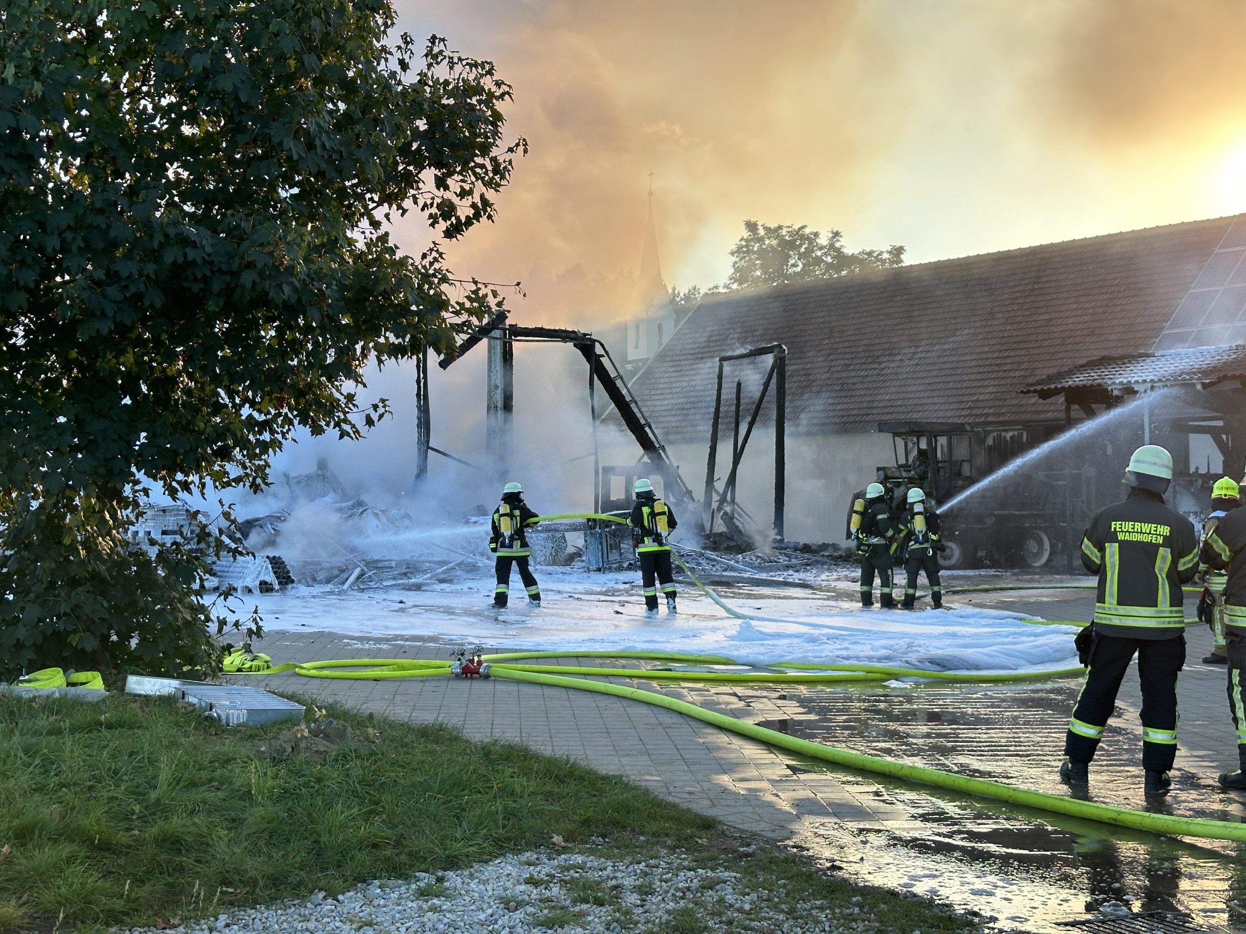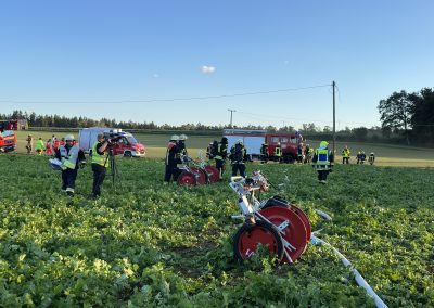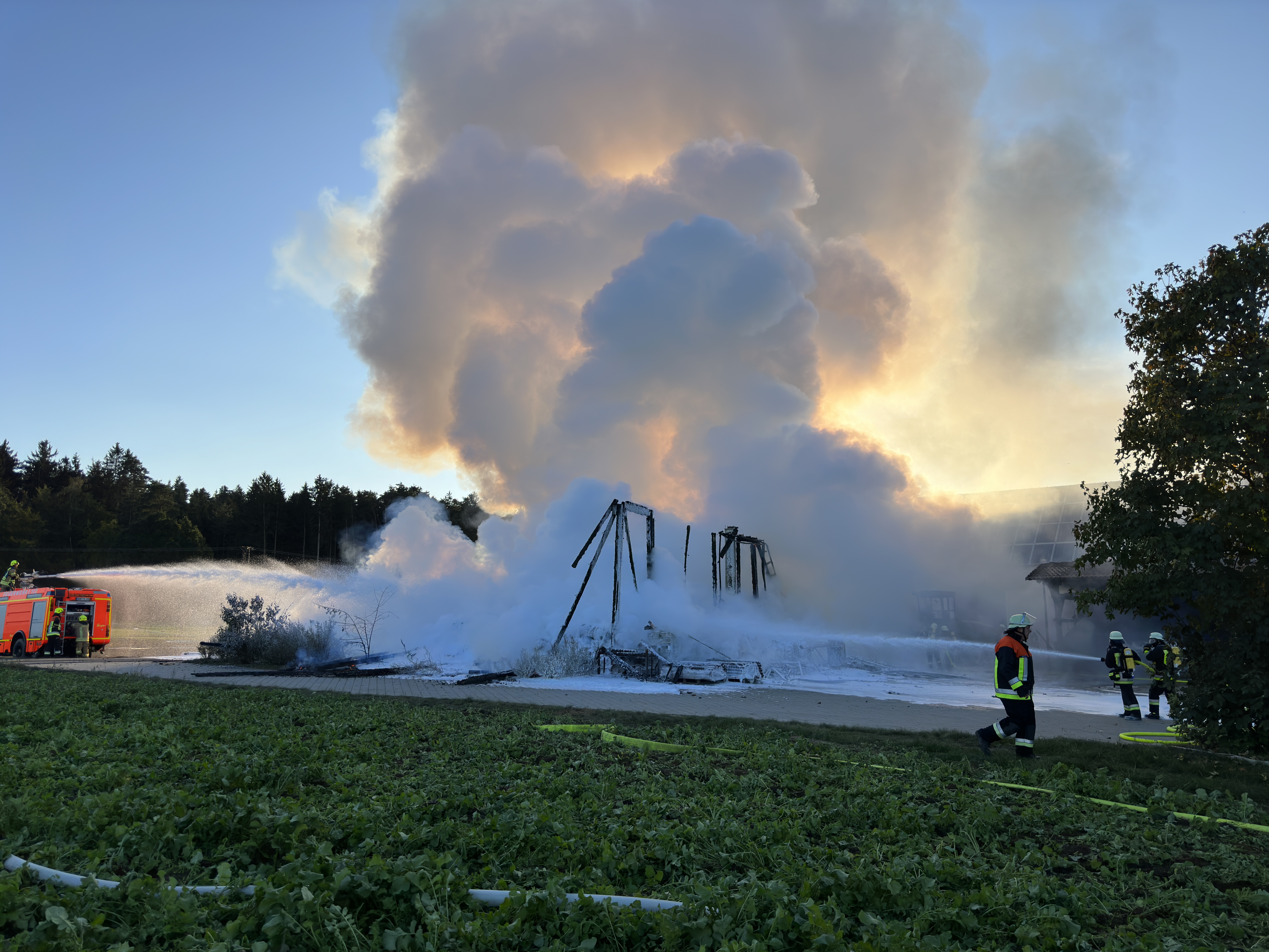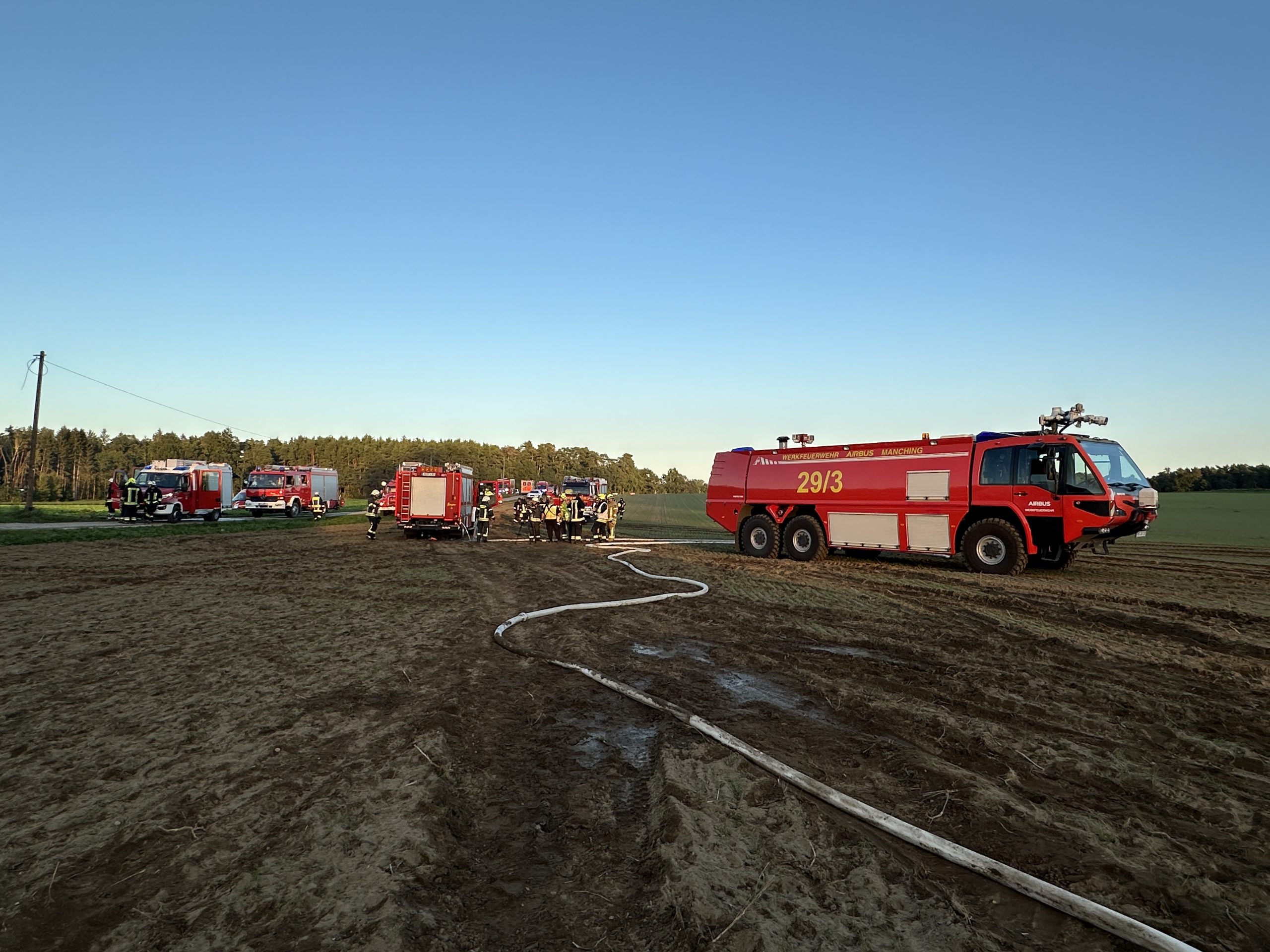 Nach kurzem warten wurden wir in den Einsatz mit eingebunden. Wir untersützen mit unserer Tragkraftspritze von unserem TSF-W bei der langen Schlauchstrecke von einem Weiher als Verstärkerpumpe. Auch unser MTW stand mit unserem Schaum-Wasserwerfer-Anhänger am Bereitstellungsplatz. Von unserem Anhänger kam unser Schaummittel zum Einsatz. Desweiteren standen wir mit 6 Atemschutzgeräteträgern am Brandobjekt auf Bereitschaft. Übriges Personal vom MTW untersützte die Kräfte vor Ort bei verschiedenen Arbeiten an der Einsatzstelle.
