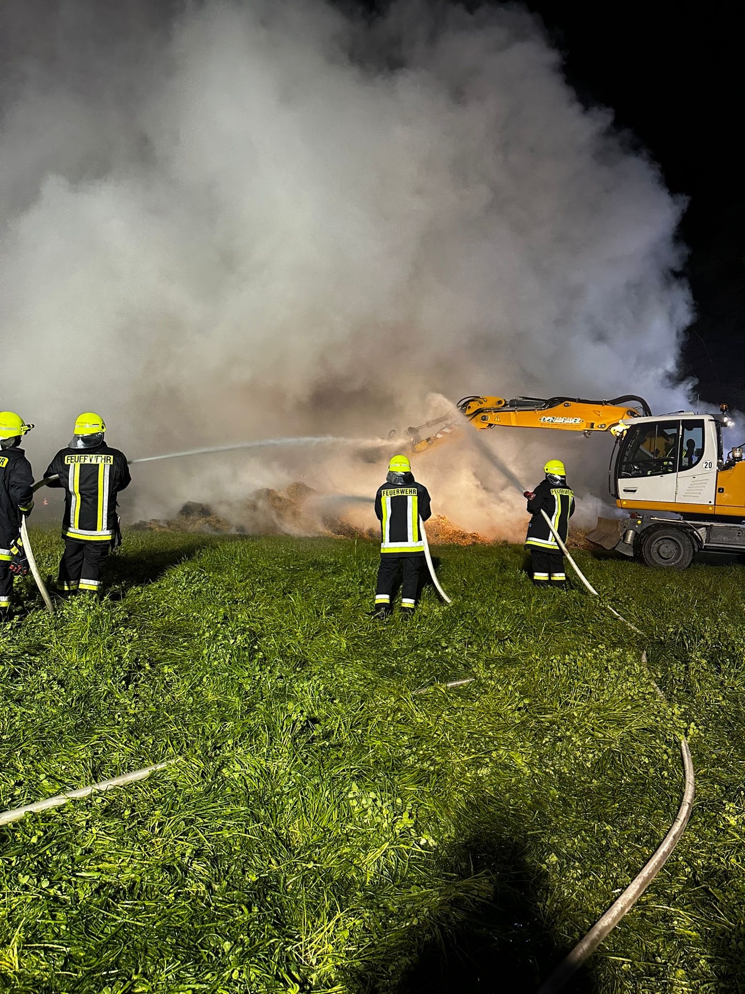 Wir wurden zu einem Brand mehrerer Strohballen nach Wintersoln bei Karlskron alarmiert.
