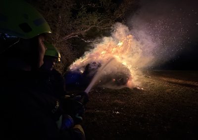 Gemeinsam mit der FF Hohenried löschten wir mit mehreren Rohren von der Waldseite.