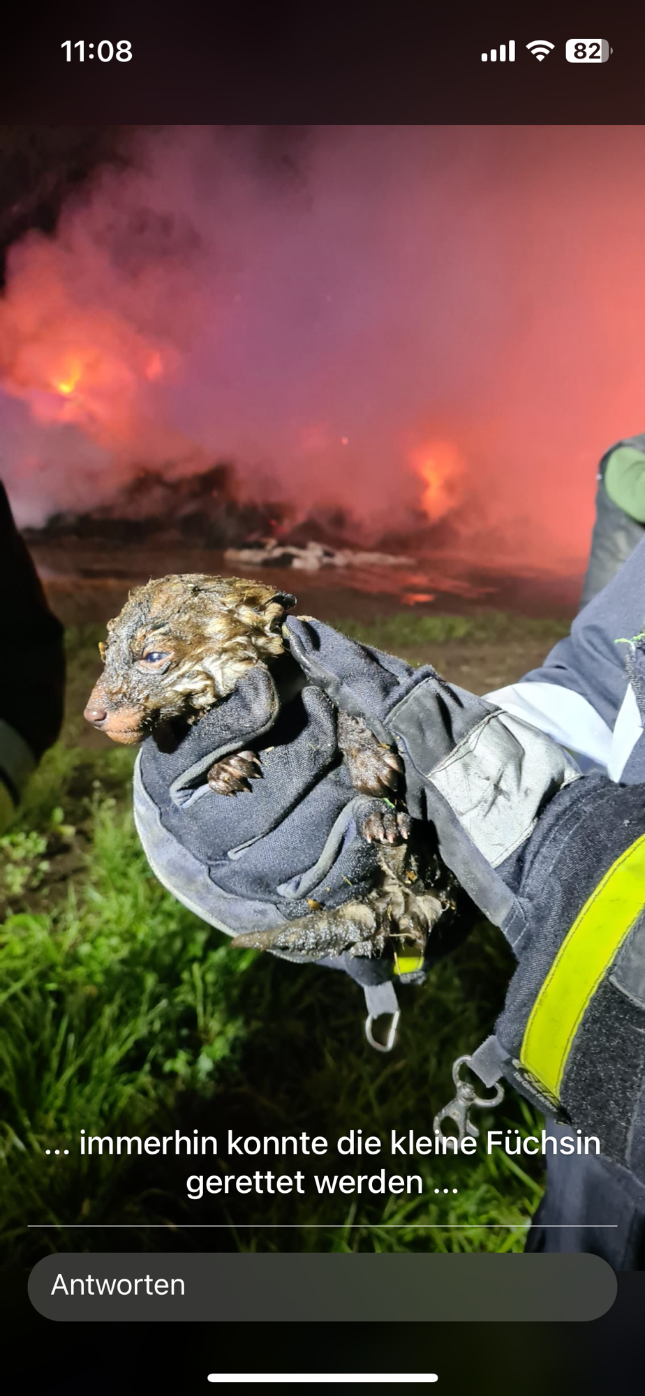 Im weiteren Einsatzverlauf konnte ein kleines Fuchsenbaby aus dem Flammen gerettet werden, siehe Fotos und Pressebericht.