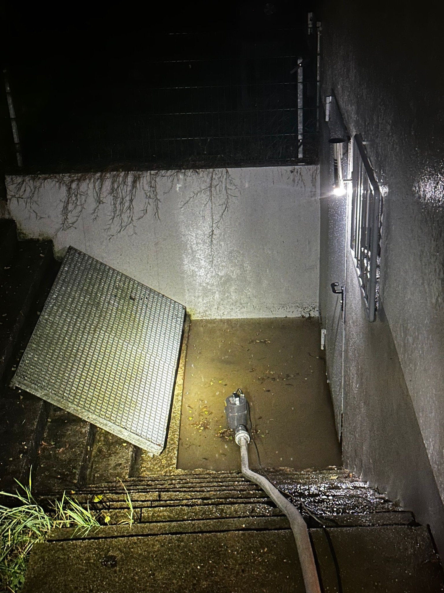 Während eines starken Gewitters mit ordentlich Starkregen wurde durch Aktive unser Feuerwehrhaus kontrolliert, da dieses Jahr bereits Wasser über die Eingangstüre des Kellers gelaufen ist. Auch bei diesem Ereignis trat Wasser in den Keller ein. Wir pumpten den Kellerabgang mit einer Tauchpumpe ab bis der Starkregen nachgelassen hatte.