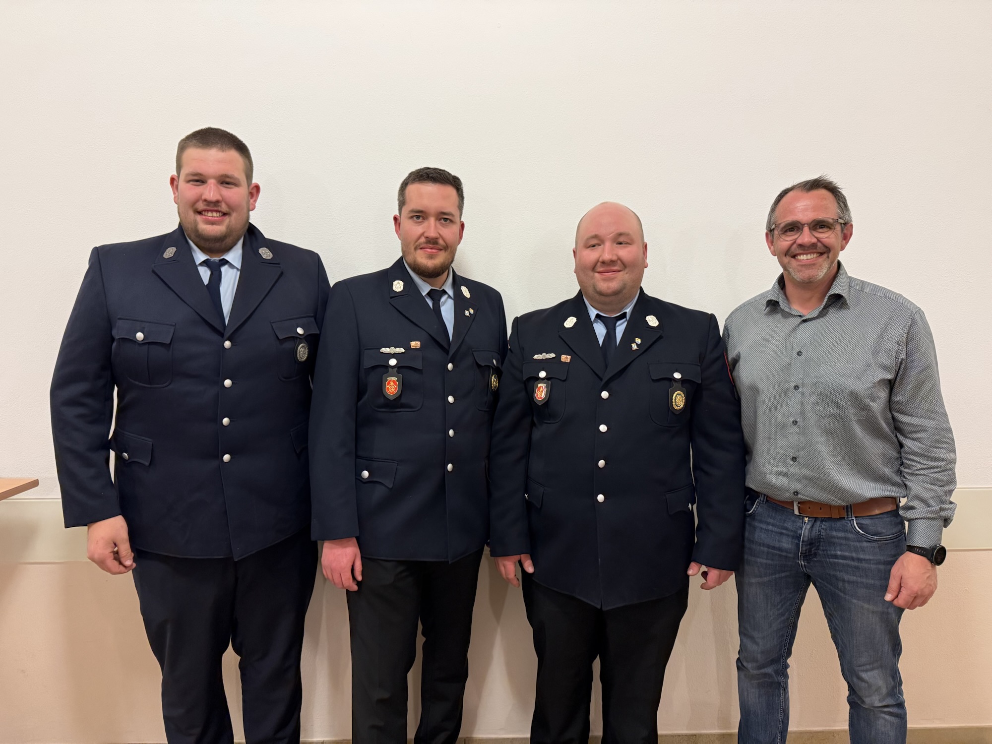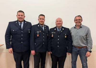 Bild 1 v.l.n.r 1.Vorstand Moritz Bodensteiner, 2.Kommandant Markus Spies, 1.Kommandant Andreas Glöckl, Bürgermeister Stefan Kumpf