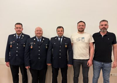 Bild 3 v.l.n.r 2.Kommandant Markus Spies, 1.Kommandant Andreas Glöckl, 1.Leiter Atemschutz Roland Knauer, 2.Leiter Atemschutz (Neu) Johannes Wenger, 3.Leiter Atemschutz Michael Kreil